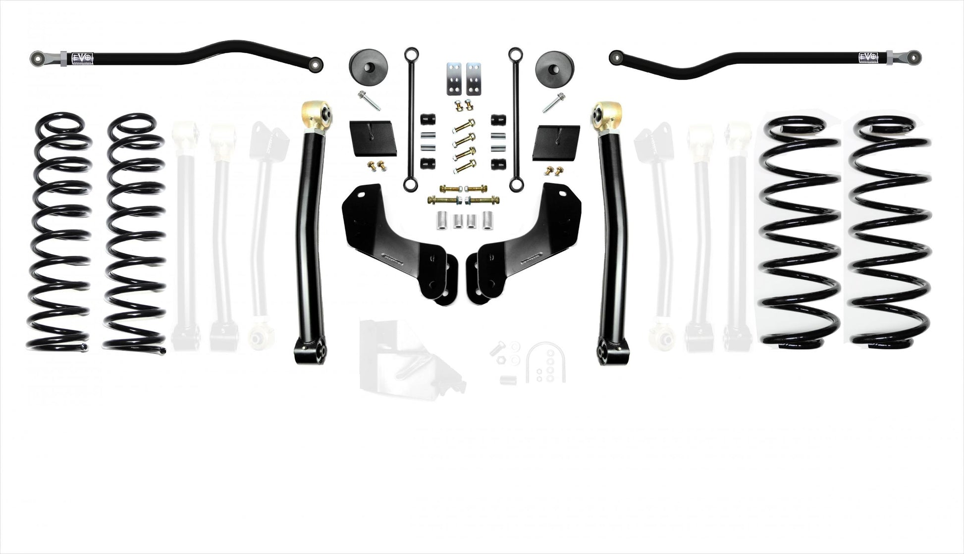 Stage 1 kits includes all the necessary parts to lift your JL 2.5 inchs. Stage 2 kits includes Stage 1 components as well as EVO MFG Enforcer JL Front Lower Adjustable Control Arms to allow for caster adjustments.