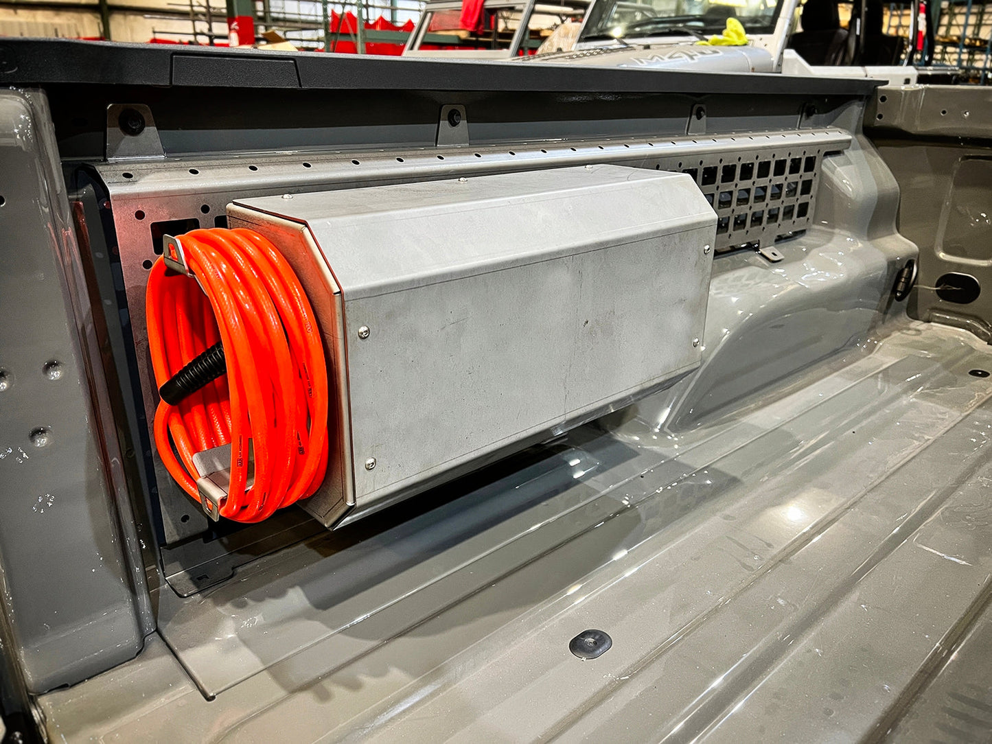 The kit includes a supplied internal air hose which connects from the manifold to the externally mounted air coupler. We integrated an external air hose storage mount so you always know where your air hose is when it is needed.