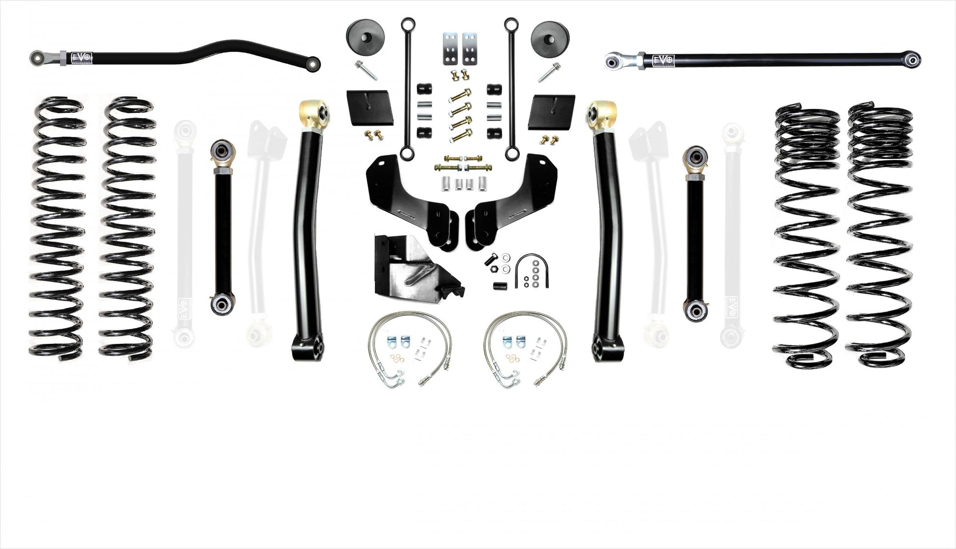 These kits come with a set of 6.5 inch lift springs specific to each corner which will keep the Jeep Gladiator JT level side to side. The EVO MFG 6.5 inch JT Enforcer Kits are easy to install using normal tools. No drilling or cutting. They require no driveshaft or exhaust modifications. Simple Bolt on installation. EVO MFG JT Enforcer kits are available in multiple configurations to suit your needs and budget and are upgradable down the road.