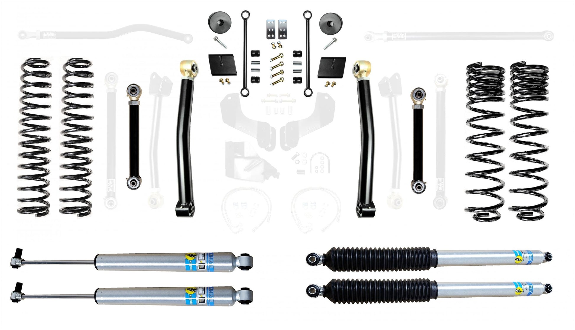 - Stage 4 kits includes stages 1 components with all 8 EVO MFG Enforcer control arms for full front and rear axle adjustments.