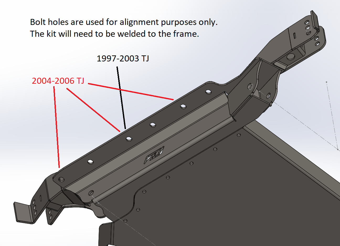 The kit is fabricated from high strength CNC laser cut steel plate. The main bodies where the links bolt in and the skid are all 1/4 inch steel plate for ultimate strength. Some of the secondary plates to box in the link mounts and internal gusseting are 3/16 inch steel plate. The design comes to you fully welded and ready to install into the Jeep. Once receiving the kit you will be required to weld the parts in place. The parts are located very easily with the factory skid plate mounting holes.
