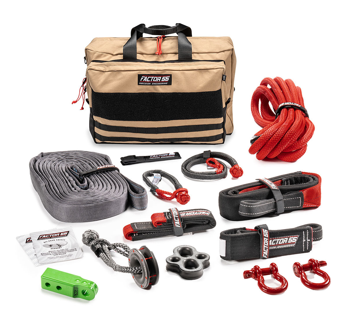 Complete with Factor 55's Ultimate Recovery Gear Bag- Large, made out of Premium Canvas, this kit is designed for the extreme offroader, overlander, or Military/SAR/First Responder. Our Recovery Gear Kits are named after some of our favorite destinations for off-roading adventure, mountain ranges found right here in Idaho.